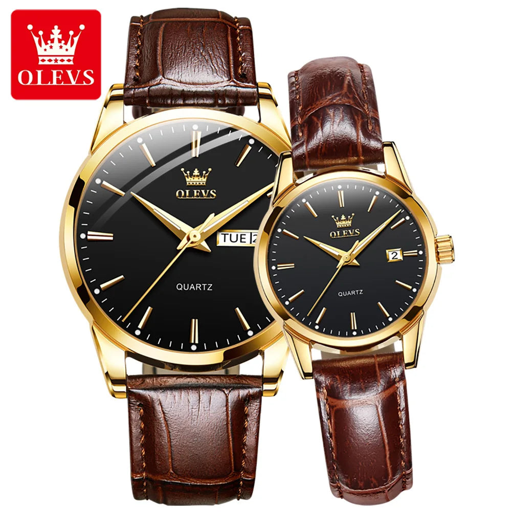 Refined Couple Quartz Watch Set - Matching Luminous Leather Pairs