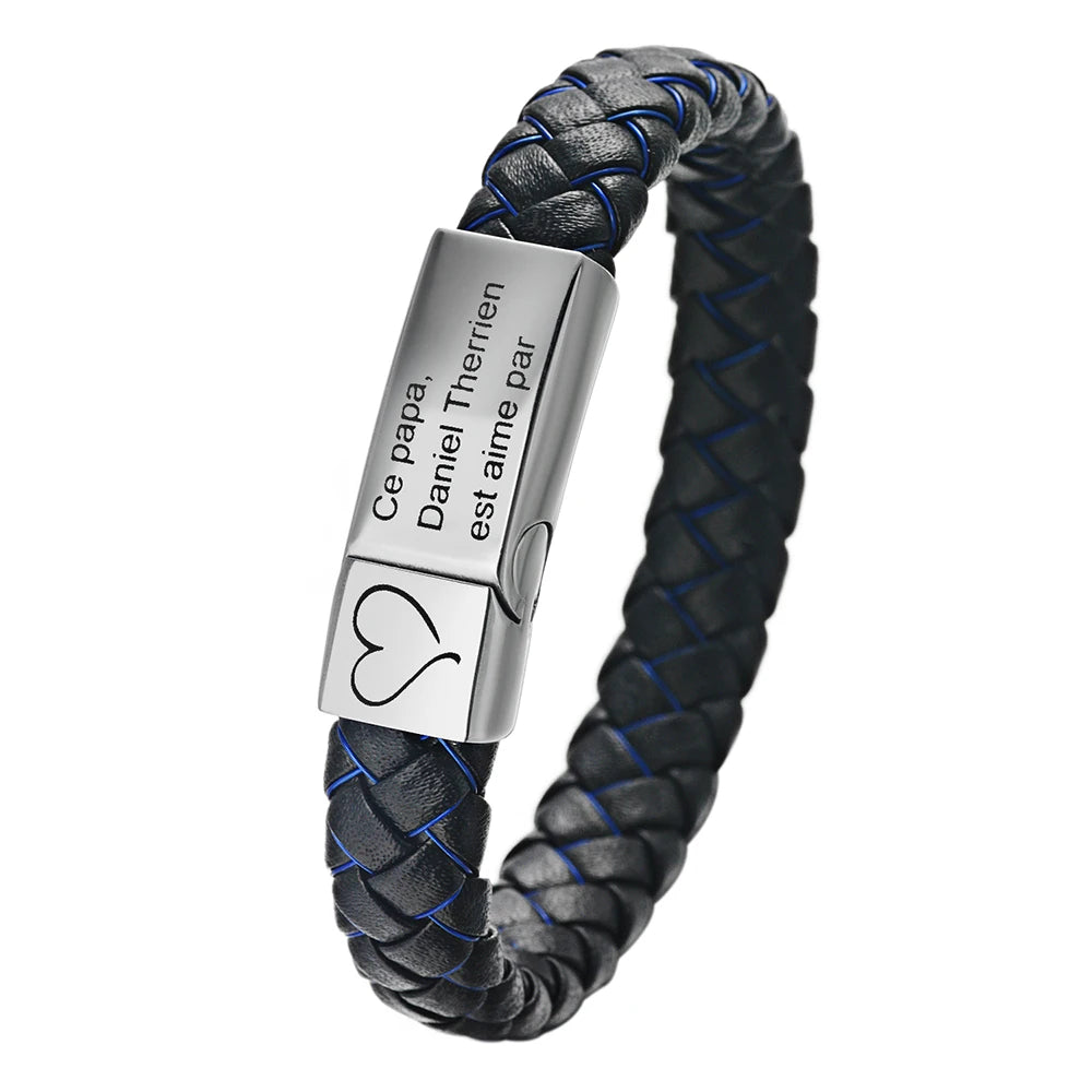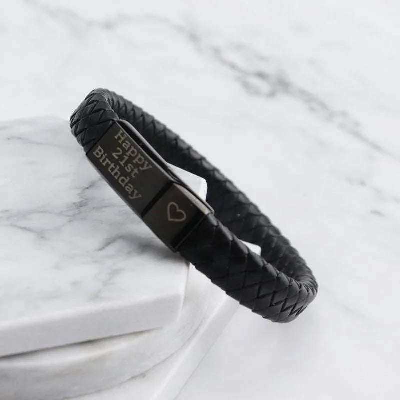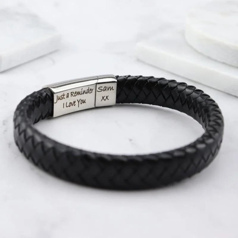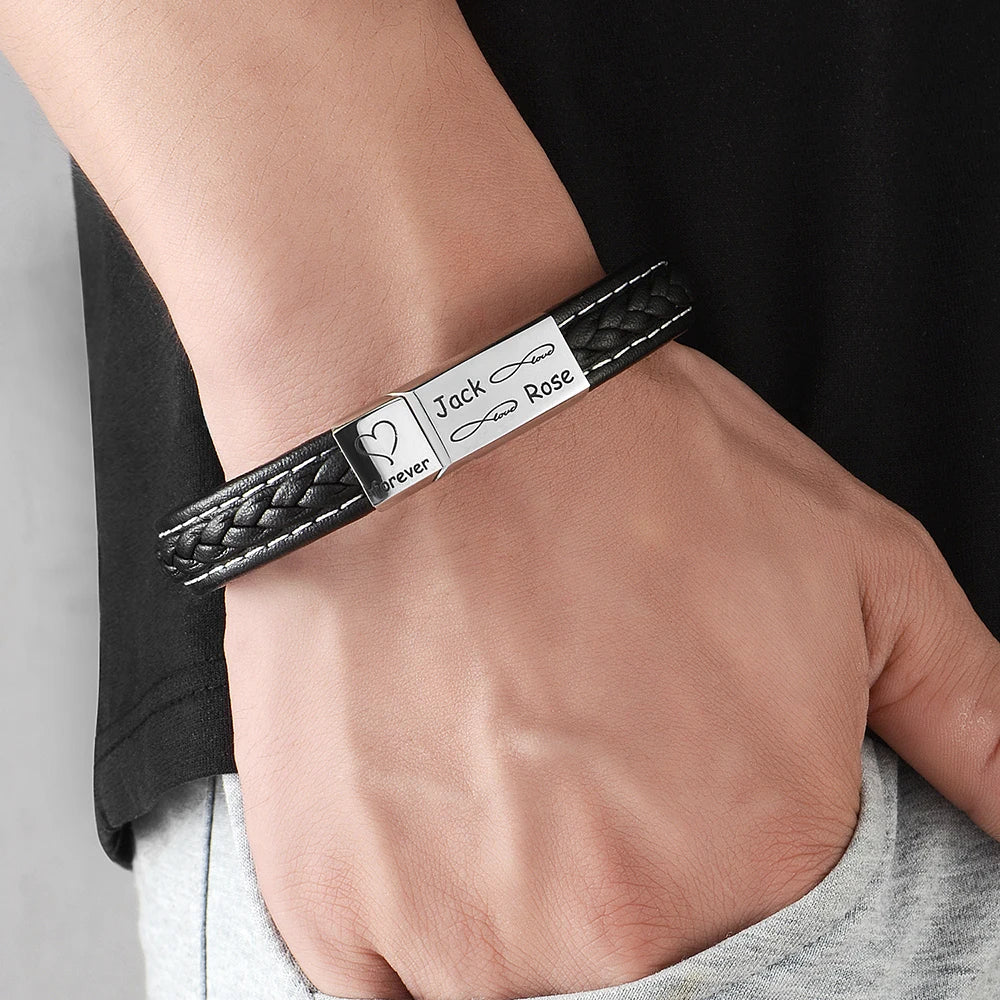 Engraved Braided Leather Bracelet - Couples Matching Wristwear