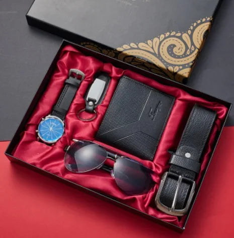 Men's 6-Piece Gift Set - Leather Watch & Wallet Matching Boutique